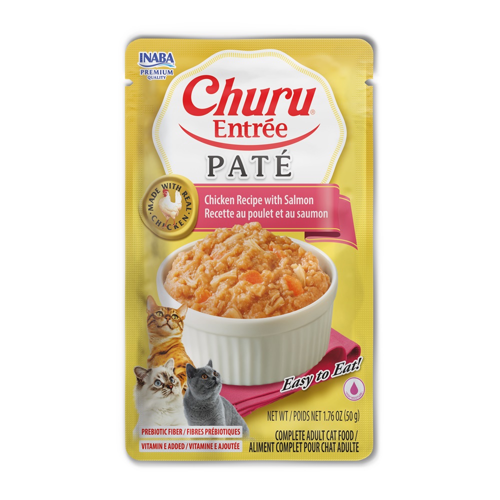 Salmon Broth, Chicken, Chicken Fat, Salmon, Tapioca Starch, Natural Flavors, Guar Gum, Calcium Carbonate, Sodium Tripolyphosphate, Inulin, Dextrose, Vitamin E Supplement, Taurine, Vitamins (Choline Chloride, Thiamine Mononitrate, Menadione Sodium Bisulfite Complex (Source of Vitamin K Activity), Vitamin A Acetate, Riboflavin, Vitamin D3 Supplement, Biotin, Pyridoxine Hydrochloride, Vitamin B12 Supplement, Folic Acid), Paprika Oleoresin (color), Minerals (Zinc Sulfate, Magnesium Sulfate, Ferrous Sulfate, Copper Amino Acid Chelate, Manganese Amino Acid Chelate, Potassium Iodide, Sodium Selenite), Vegetable Oil, Iron Oxide (color).