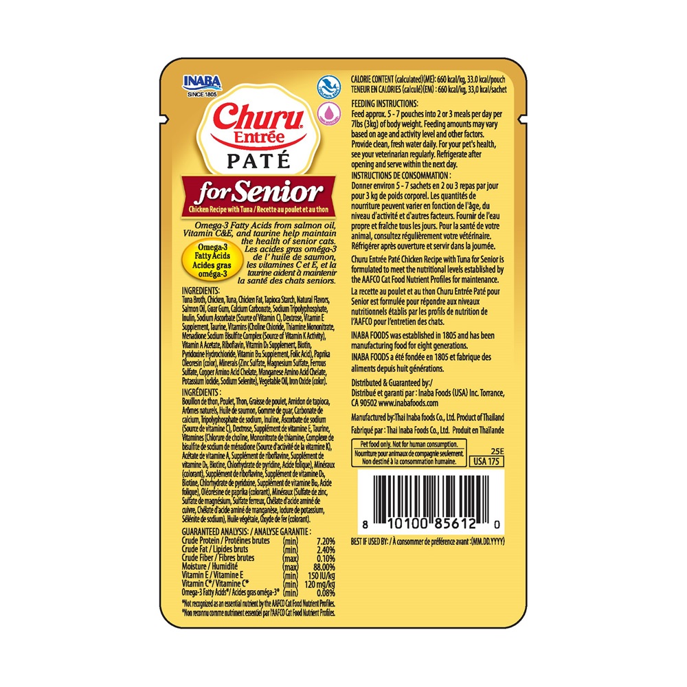Tuna Broth, Chicken, Tuna, Chicken Fat, Tapioca Starch, Natural Flavors, Salmon Oil, Guar Gum, Calcium Carbonate, Sodium Tripolyphosphate, Inulin, Sodium Ascorbate (Source of Vitamin C), Dextrose, Vitamin E Supplement, Taurine, Vitamins (Choline Chloride, Thiamine Mononitrate, Menadione Sodium Bisulfite Complex (Source of Vitamin K Activity), Vitamin A Acetate, Riboflavin, Vitamin D3 Supplement, Biotin, Pyridoxine Hydrochloride, Vitamin B12 Supplement, Folic Acid), Paprika Oleoresin (color), Minerals (Zinc Sulfate, Magnesium Sulfate, Ferrous Sulfate, Copper Amino Acid Chelate, Manganese Amino Acid Chelate, Potassium Iodide, Sodium Selenite), Vegetable Oil, Iron Oxide (color).