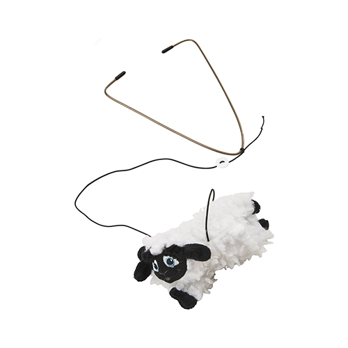 A-Door-Able Baa Baa Black Sheep from your favorite nursery rhyme. Easily attaches to any door frame with a pastic coated hanger that is safe for walls and door frames. Adjustable elastic cord allows you to set the desired toy height. Features a break-away safety clip to ensure a safe play time. The fuzzy white fur is purr-fect for cats that love to get their claws into fabrics and includes a catnip/silver vine blend.