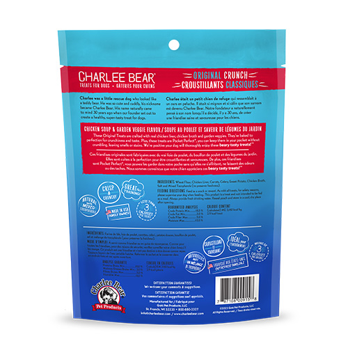THESE ORIGINAL Treats are crafted with real chicken liver for protein, real chicken broth and garden veggies right here in the USA. Made without soy, corn, artificial flavors or preservatives, they’re baked to perfection for crunchiness and taste. Plus, these treats are Pocket Perfect®, so you can keep them in your pocket without crumbling, leaving smells or stains. So they’re great for training or just for fun. We’re positive your dog will thoroughly enjoy these beary tasty treats!™