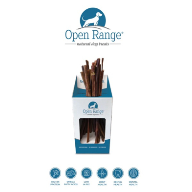 NUTRITIOUS: Open Range Collagen Bully Sticks are single-source protein treats that provide essential nutrients. vitamins. minerals. and they are very high in chondroitin and glucosamine. Collagen is found below the top layer of skin (two layers below the tough outer layer that is used for leather and upholstery and notably rawhide) and is one of the key elements in connective tissue. Collagen is like a glue that helps to hold things together.