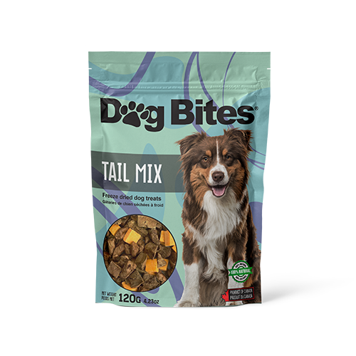 Dog Bites Tail Mix is prepared and packaged in New Brunswick, Canada.
