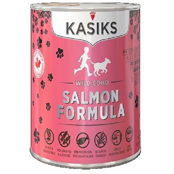 Boneless/skinless Salmon, Water sufficient for processing, Pea Starch, Sodium Chloride, Calcium Carbonate, Dicalcium Phosphate, Potassium Chloride, Choline Chloride, Taurine, Kale, Minerals (Zinc, Proteinate, Iron, Proteinate, Copper Proteinate, Manganese Proteinate, Calcium Iodate), Vitamins (Vitamin E Supplement, Niacin, Vitamin A Supplement, Thiamine mononitrate, Riboflavin, Biotin, Vitamin B12 Supplemen,t D-pantothenic Acid, Folic Acid, Vitamin D3 Supplement), Blueberries, Raspberries, Cranberries, Coconut