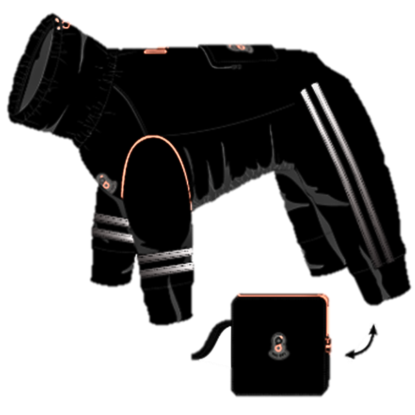 Keep your pet baby warm in our Goo-eez snowsuit! Our patented elastomer form-fitting gel technology guarantees a perfect fit, secure and comfortable hug on your dogs chest, and it's waterproof abilities keep your dogs fur clean from the snow and slush. Our form-fitting gel can stretch up to 3 times its size for an easy fitting experience. It's a game changer for winter walks.