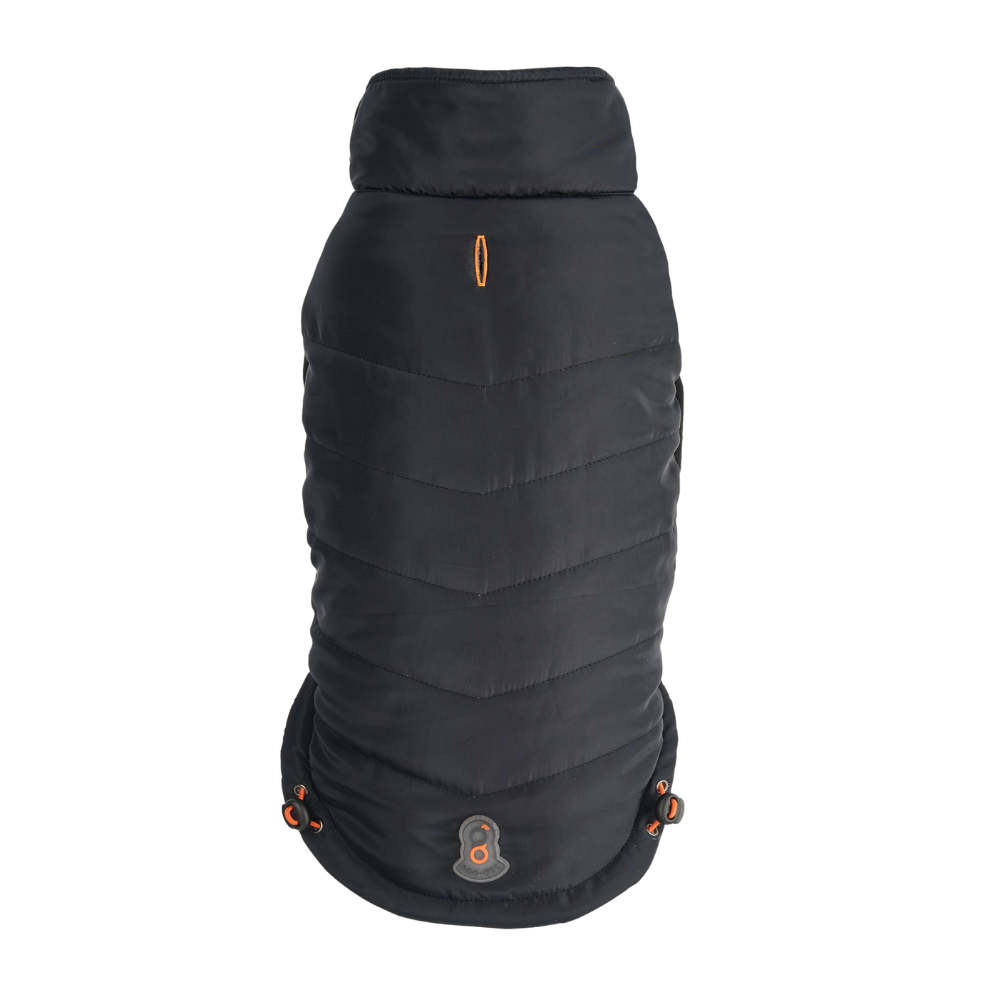 The Goo-eez Mock Neck Signature Jacket will keep your dog warm and looking good. Superior insulation is provided by the water-resistant shell and plush interior lining. Our proprietary elastomer gel and specially weaved rib fabric underbelly ensure a tight fit that keeps warm air in and cold air out. The flexible underbelly is waterproof, can stretch up to 2 x making it super easy to put on and take off, and does not irritate the skin.