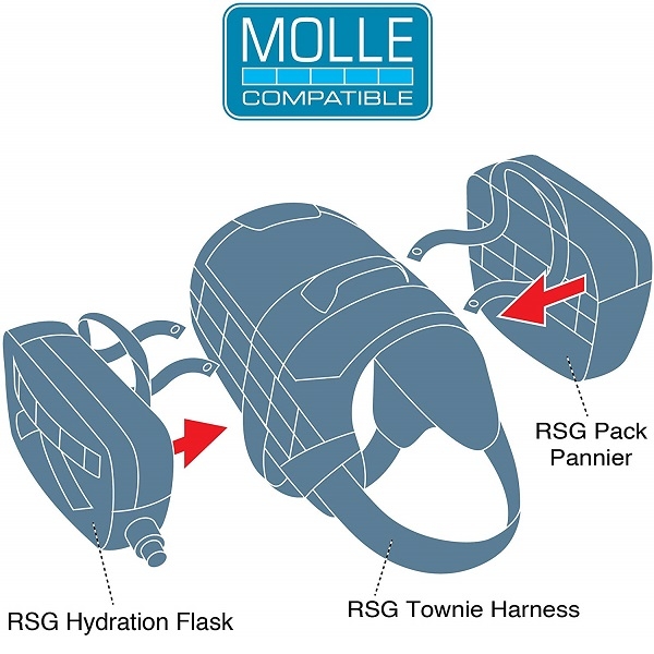 Getting your dog in and out of her harness doesn’t get much easier than the RSG Townie Harness, with its single-buckle design. Lightweight and simple in the extreme, it’s the harness for dogs and their parents who see every snap, clip, and strap as a barrier to fun. But simplicity doesn’t mean sacrificing strength. The Townie stands up to even the strongest dogs and their ambitious adventures. And with the MOLLE-compatible design, you can easily attach everything from an RSG Hydration Flask to Panniers, and you’re off in the flash.