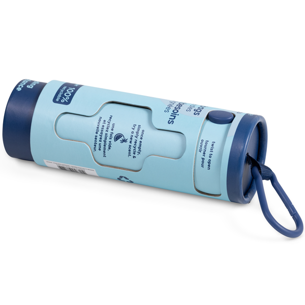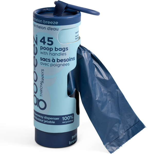 No more rolls. No more tearing. No more refills. Just twist, pull & go, just like a tissue box. When it’s empty, simply recycle and replace it. It slips in your pocket or clips onto a leash, and the bags have easy-tie handles for quick cleanup.