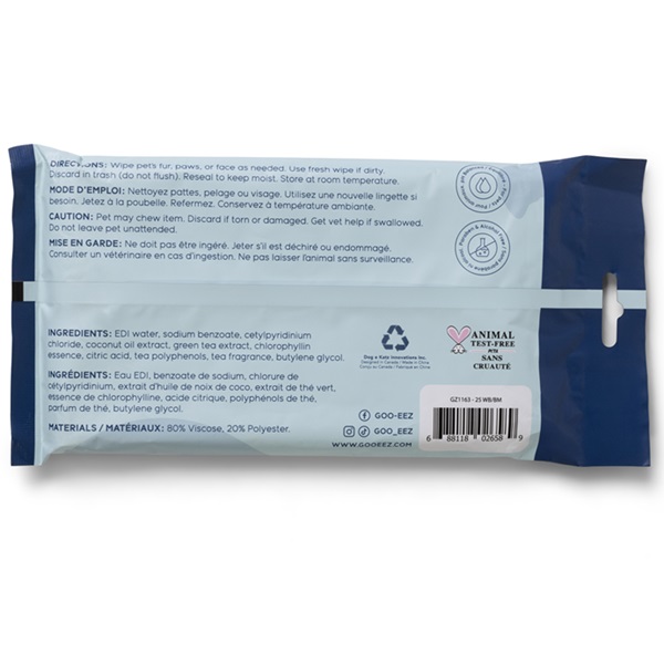 Goo-eez pet cleansing wipes are designed for quick and powerful cleanups, featuring unique and aromatic scents not commonly found in other brands. The wipes offer powerful cleansing action to remove dirt, dander, debris, and odours from paws, fur, and skin. They are ideal for daily touch-ups, quick cleanups after walks, playtime, or before snuggling.