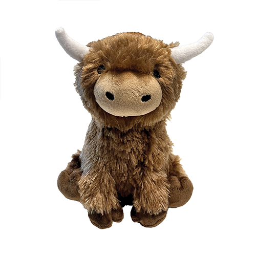 Introducing our sweet and endearing Highland Cow Plushies! Our newest plush toys are made with a soft long hair plush, with short plush accents for different textures. Each toy features a hidden squeaker inside for added engagement. Our toys are always generously stuffed, making it the perfect companion for cuddlers or dogs who love to de-fluff plush toys. Our Highland Cow Plushies are sure to be a favorite in any toy box. Available in 2 sizes to suit puppies, small and even larger breeds!