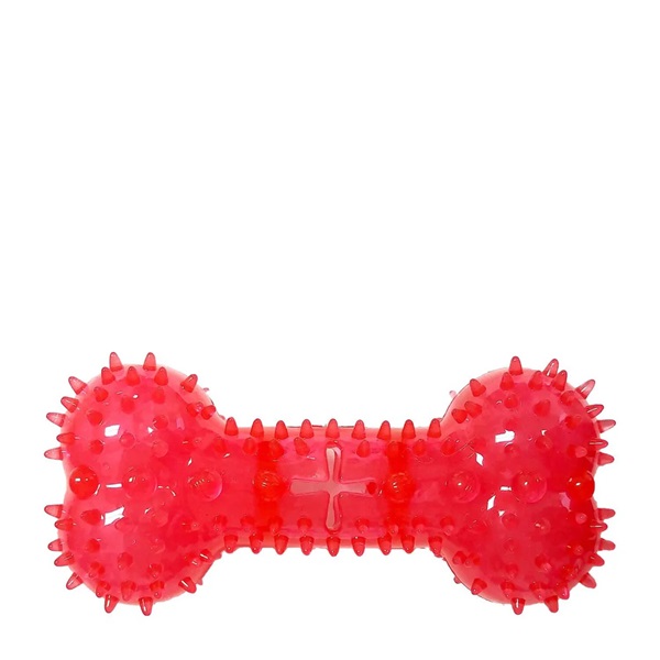 This bone-shaped interactive dog toy will delight your favorite pet. Made of durable natural rubber, just insert treats at the center so that your dog can play while feasting! The rubber spikes add to the fun and have the added benefit of cleaning teeth and gums.
