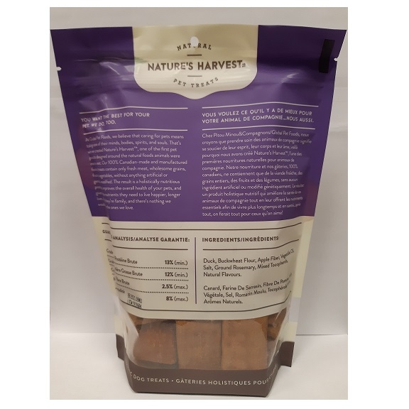 Duck, buckwheat flour, apple fiber, vegetable oil. salt, ground rosemary, mixed tocopherols, natural flavours