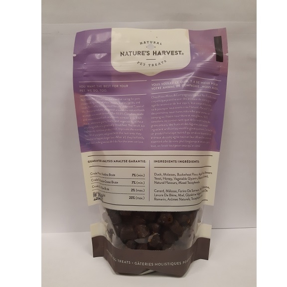 Duck, molasses, buckwheat flour, apple fiber, brewers yeast, honey, vegetable glycerin, rosemary extract, natural flavours, mixed tocopherols