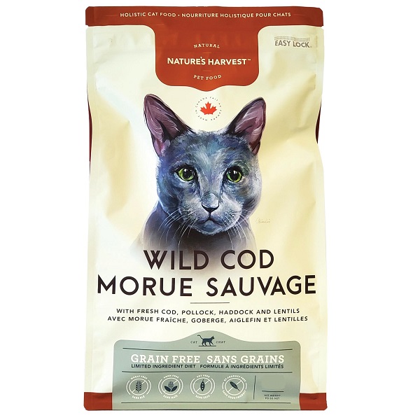 Fresh white fish (Cod, Pollock, Haddock), menhaden fish meal, peas, vegetable oil, lentils, salmon meal, potato protein, whole flaxseed, dried citrus pulp, tapioca, natural flavor, lecithin, choline chloride, calcium propionate (as a preservative), salt, sodium bisulfate, DL-methionine, taurine, yeast extract (a source of mannan-oligosaccharides), ferrous sulfate, chicory extract (a source of inulin), Yucca schidigera extract, alpha-tocopherol acetate (a source of vitamin E), dried kelp, dried carrots, zinc oxide, dried apples, dried cranberries, probiotics (dehydrated Lactobacillus acidophillus fermentation products, dehydrated Lactobacillus casei fermentation products, dehydrated Bifidobacterium bifidium fermentation products, dehydrated Streptococ-cus faecium fermentation products, dehydrated Aspergillus oryzae fermentation products), nicotinic acid, rosemary extract, zinc proteinate, manganous oxide, D-calcium pantothenate, manganese proteinate, thiamin mononitrate, riboflavin, pyridoxine hydrochloride, vitamin A supplement, cholecalciferol (a source of vitamin D3), biotin, copper proteinate, dehydrated alfalfa meal, dried spinach, dried green tea extract, anise seed, dried broccoli, dried cauliflower, turmeric, dried blueberries, sodium selenite, vitamin B12 supplement, calcium iodate, folic acid.