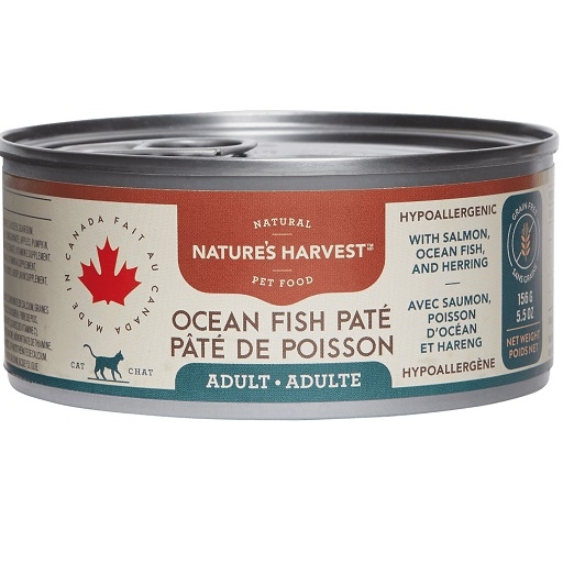 Salmon, Ocean fish, Herring, Fish Broth, Peas, dried whole eggs, Lentils, Sweet potatoes, calcium carbonate, Flaxseed, guar gum, Choline chloride, Salt, Yeast extract, Chicory root extract, Yucca schidigera extract, Pea Fiber, Alfalfa, Pomegranate, Apples, Pumpkin, Cranberries, Blueberries, Blackberries, Taurine, L-Ascorbyl-2-Polyphosphate (source of Vitamin C), zinc proteinate, Vitamin E Supplement, Ferrous Sulfate, Iron Proteinate, Zinc Sulfate, Niacin Supplement, Thiamine Mononitrate, Copper Proteinate, Vitamin A Supplement, Selenium yeast, Manganese Sulfate, Manganese Proteinate, d-Calcium Pantothenate, Pyridoxine Hydrochloride, Riboflavin Supplement, Biotin, Vitamin D3 Supplement, Vitamin B12, Calcium Iodate, and Folic Acid