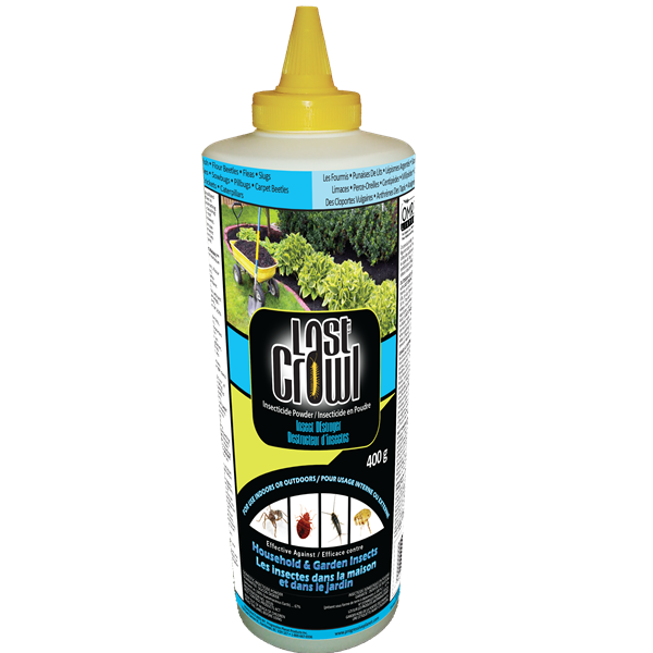 Made from fresh water diatomaceous earth, Last Crawl™ Insect DEstroyer Insecticide Powder kills household and garden insects without the addition of any chemical additives. Last Crawl™ Insect DEstroyer Insecticide Powder is a physical insecticide to which insects cannot develop an immunity. It is therefore effective against chemically resistant insect populations. Last Crawl™ Insect DEstroyer Insecticide Powder can be used indoors and outdoors and can be mixed with an attractant such as a cereal or nut powder, icing sugar, powdered soup mixes, or powdered yeast, to attract and encourage the insect to ingest it resulting in a lacerated digestive tract, causing further dehydration. Please see label for further instructions and specific application directions.