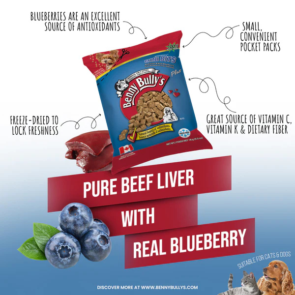 Treat your furry friends to Beef Liver Plus Blueberry™ Pillow Pack! Made from human-grade, nutritious ingredients, these low-calorie treats provide essential nutrients for a healthy diet.