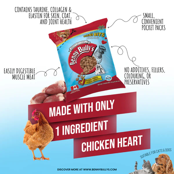 Plus, the 100% recyclable packaging makes them an eco-friendly choice. Give your pets a delicious and healthy treat with Chicken Heart Mini Bits™