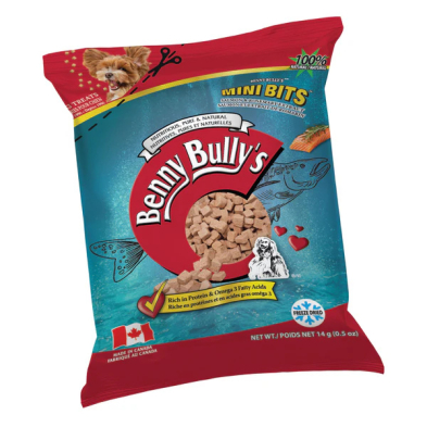 Crafted with only two ingredients — salmon and rosemary extract — this grain and gluten-free treat is an excellent source of omega-3. The EPA and DHA in salmon help maintain good cardiovascular function and decrease inflammation, while providing essential proteins for muscle and brain development. The small-sized pieces are perfect for training and rewards.