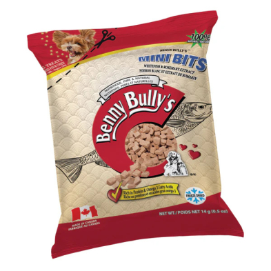 Crafted with only two ingredients — salmon and rosemary extract — this grain and gluten-free treat is an excellent source of omega-3. The EPA and DHA in salmon help maintain good cardiovascular function and decrease inflammation, while providing essential proteins for muscle and brain development. The small-sized pieces are perfect for training and rewards.
