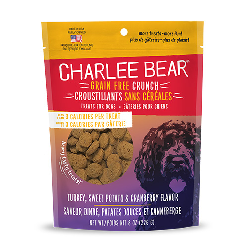 THESE GRAIN FREE Treats are crafted with real turkey for protein, antioxidant-rich sweet potato and cranberries right here in the USA. Made without wheat, corn, soy or artificial preservatives, they’re loaded with flavor and have a light crunch dogs simply love. Plus, these treats are Pocket Perfect®, which means you can keep them in your pocket without crumbling, leaving smells or stains. So they’re great for training or just for fun. We’re positive your dog will thoroughly enjoy these beary tasty treats!™