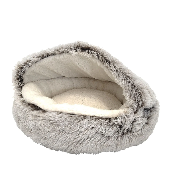 Our luxurious silk-like plush hooded bed with inside ultra soft sherpa provides comfort and security and is ideal for cats and small dogs. The snuggly hood traps your pet's body heat for a super cozy and warm sleeping spot allowing them to enjoy a restful sleep for better behaviour and health.