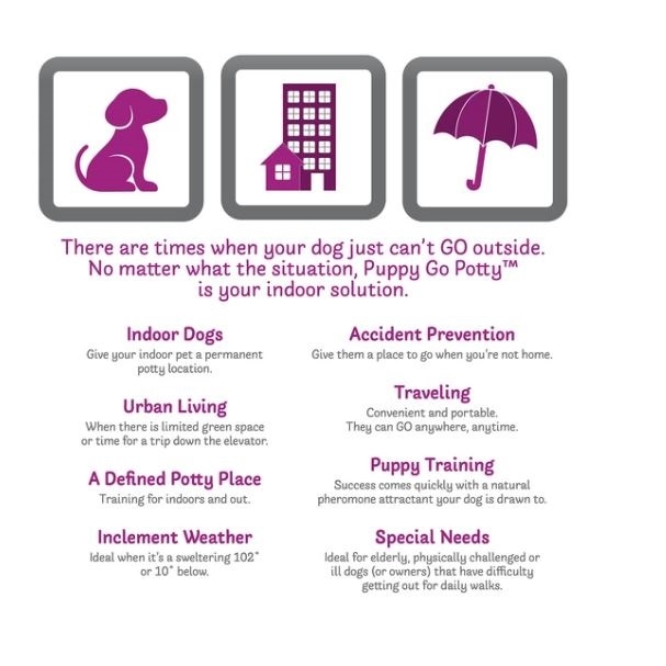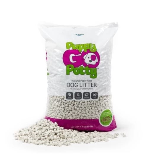 An earth-friendly alternative to plastic puppy pads, Puppy Go Potty is a 100% natural, biodegradable dog litter in the form of large paper nuggets that won't get stuck in their paws. It contains natural odor control and a pheromone attractant which makes training easy! A great solution for small dog owners, ill or senior dogs, breeders, trainers, doggie daycares, rescues and more.