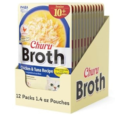 The first ingredient is chicken broth made from real chicken, then we mix in succulent flakes of real chicken and wild-caught tuna for a mouthwatering blend your kitty will love