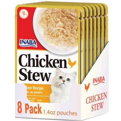 KEEP YOUR FELINE HYDRATED: Each delicious Inaba Chicken Stew Pouch contains 88% moisture, which is a great way to hydrate cats who naturally tend not to drink enough water. COMPLEMENT YOUR KITTY'S MEALS: Does your kitty come looking for more when their bowl is empty? Add a pouch of Inaba Chicken Stew as a side dish, use as a wet/dry cat food topper, or give as a special treat without adding a lot of extra calories