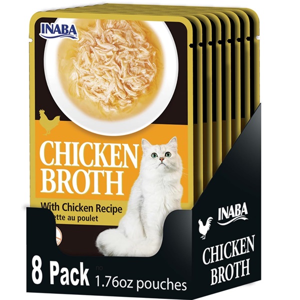 KEEP YOUR FELINE HYDRATED: Each delicious Inaba Chicken Broth Pouch contains 93% moisture, which is a great way to hydrate cats who naturally tend not to drink enough water. COMPLEMENT YOUR KITTY'S MEALS: Does your kitty come looking for more when their bowl is empty? Add a pouch of Inaba Broth as a side dish, use as a wet/dry cat food topper or give as a special treat without adding a lot of extra calories.