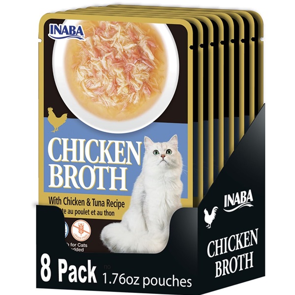 KEEP YOUR FELINE HYDRATED: Each delicious Inaba Chicken Broth Pouch contains 93% moisture, which is a great way to hydrate cats who naturally tend not to drink enough water. COMPLEMENT YOUR KITTY'S MEALS: Does your kitty come looking for more when their bowl is empty? Add a pouch of Inaba Broth as a side dish, use as a wet/dry cat food topper or give as a special treat without adding a lot of extra calories.