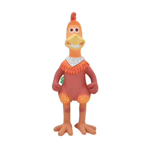 Our Rocky the Rooster is made of durable latex that squeaks for added fun. His beaming smile helps capture Rocky’s on screen personality: charming, brave, and heroic!