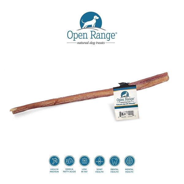 One of Open Ranges most popular treats, the low odour bully/pizzle stick has all the same great flavour and health benefits of our standard bully/pizzle stick, with less odour. We patiently dry and steam cure the treat in a 100% natural process, reducing the odour yet maintaining the great taste dogs love.