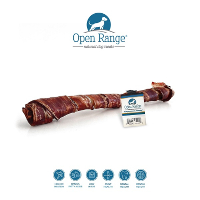 The Open Range Cheeky Bully Stick with Esophagus is made from 100% pure beef cheek meat and Beef Esophagus. Beef Esophagus has one of the highest contents of protein, while its low-fat profile makes it one of the most nutritious treats. This Cheeky Bully Stick looks like a Pizzle Bully Stick, and dogs love its great beefy taste! It chews like a Pizzle Bully Stick and is highly digestible. This is the NEXT Bully Stick!