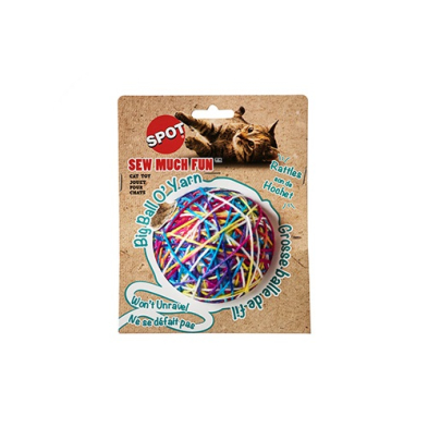 Foam core ball with polyester yarn wrap. Cats love the texture of the foam core as they dig their nails into this toy. Yarn is securely attached to the toy to prevent unraveling. 3.5″