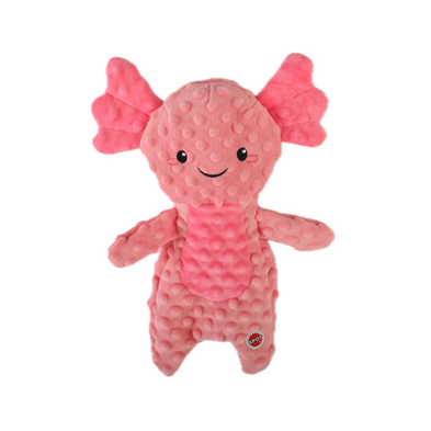 Adorable axolotl dog toys made with super soft plush and embroidered faces. Stuffing free body with squeaker inside. Assorted pink and blue colors.